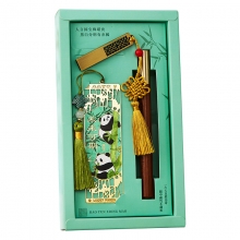 熊猫系列金属书签 花梨木笔+书签+书扣礼盒套装 送客户礼品
